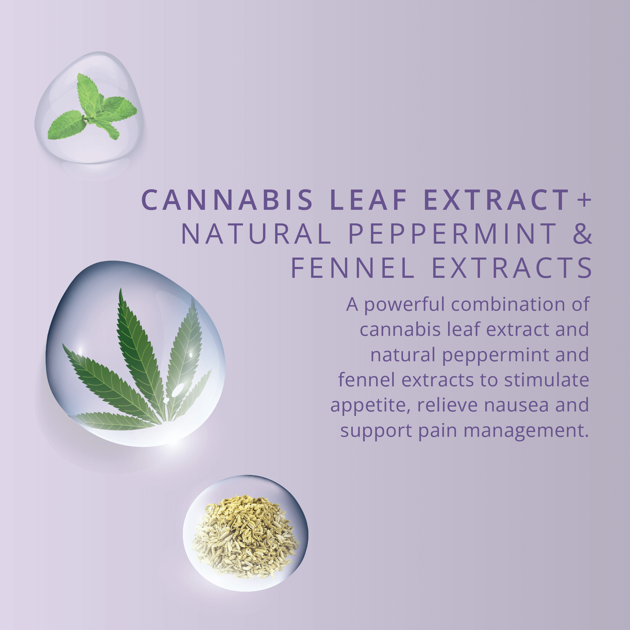 Relieva contains high-quality cannabis (Vijaya) leaf extract, rich in CBD, combined with natural peppermint and fennel oils. This blend of cannabinoids and natural ingredients helps stimulate appetite, relieve nausea, and support cancer-related pain. It also aids in managing anxiety and insomnia, promoting overall well-being.